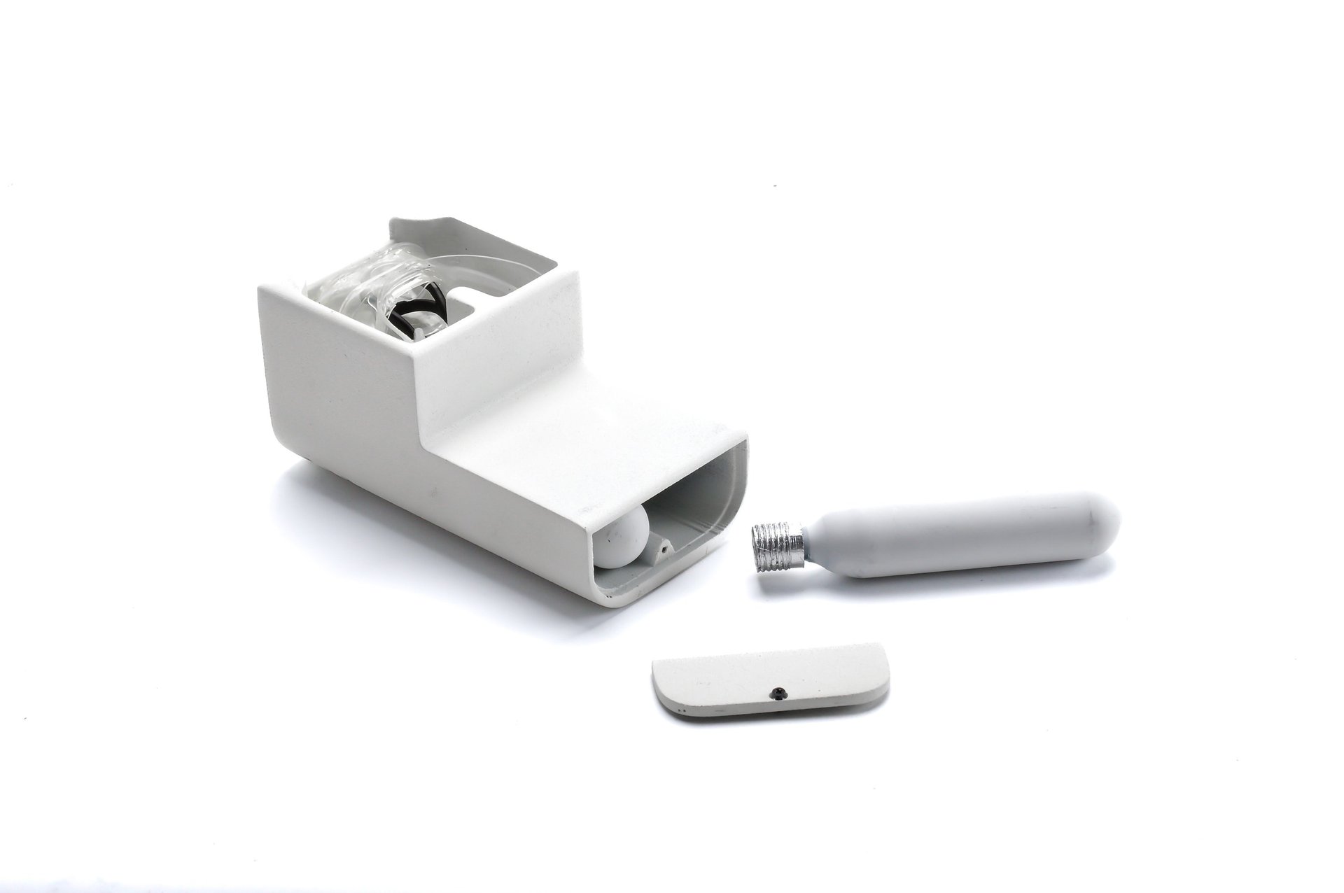 polycarbonate, oxygen tanks, batteries, and LED light