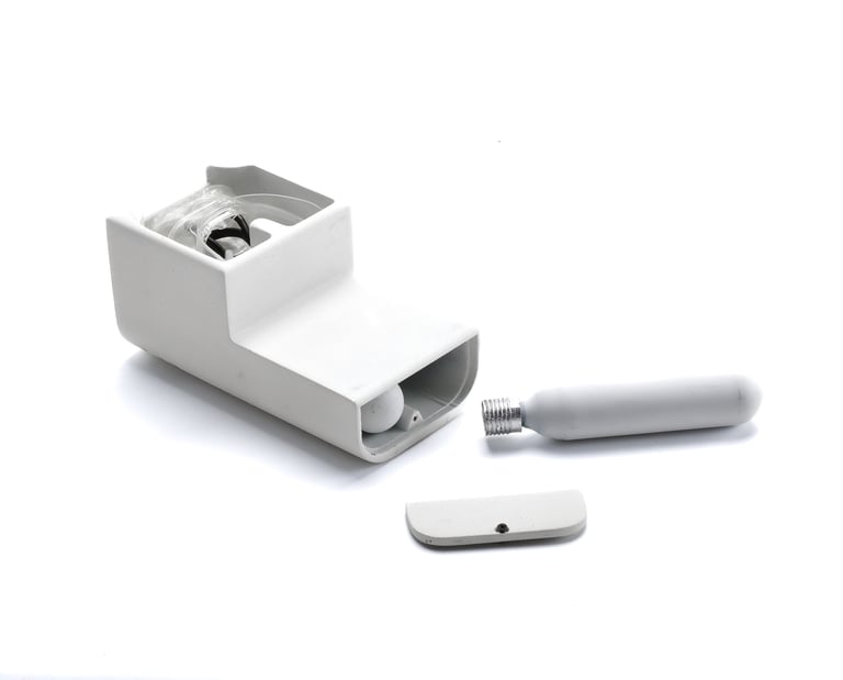 Elevating safety to new heights, EA stands as a portable modular air device designed for critical moments, offering over a minute of life-sustaining oxygen—enough time to escape a water auto accident. Compact yet powerful, this device features an integrated light that activates upon mouthpiece ejection, along with a nose clip for effortless use. Employing bone conduction technology, the mouthpiece intuitively communicates the victim's orientation and safety procedures. EA's thoughtful design enables the seamless replacement of oxygen tanks, ensuring safety and sustainability.