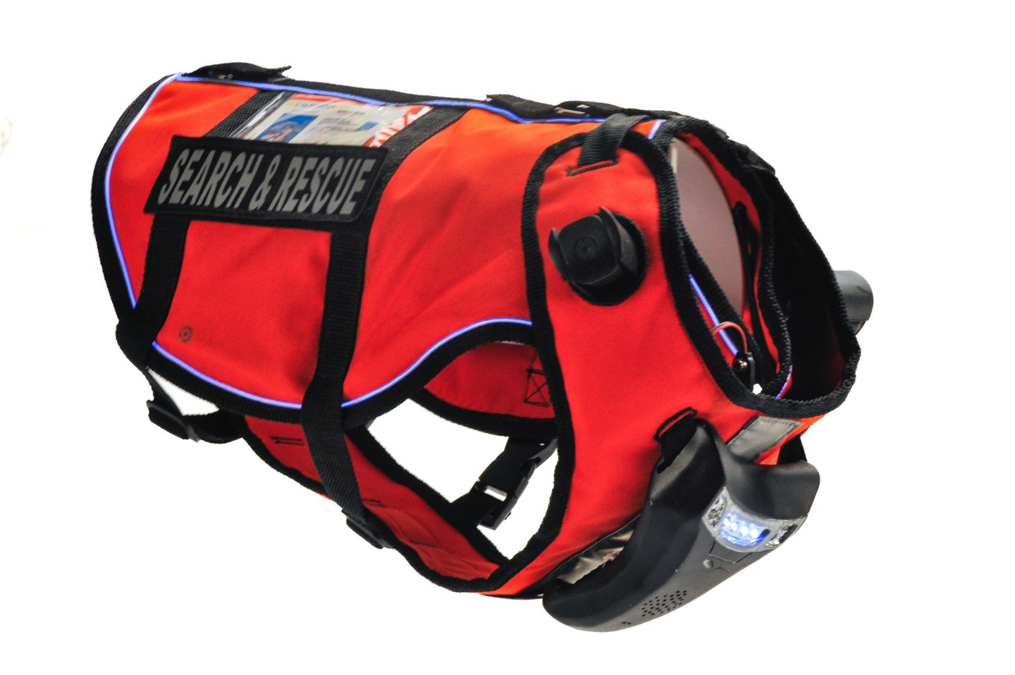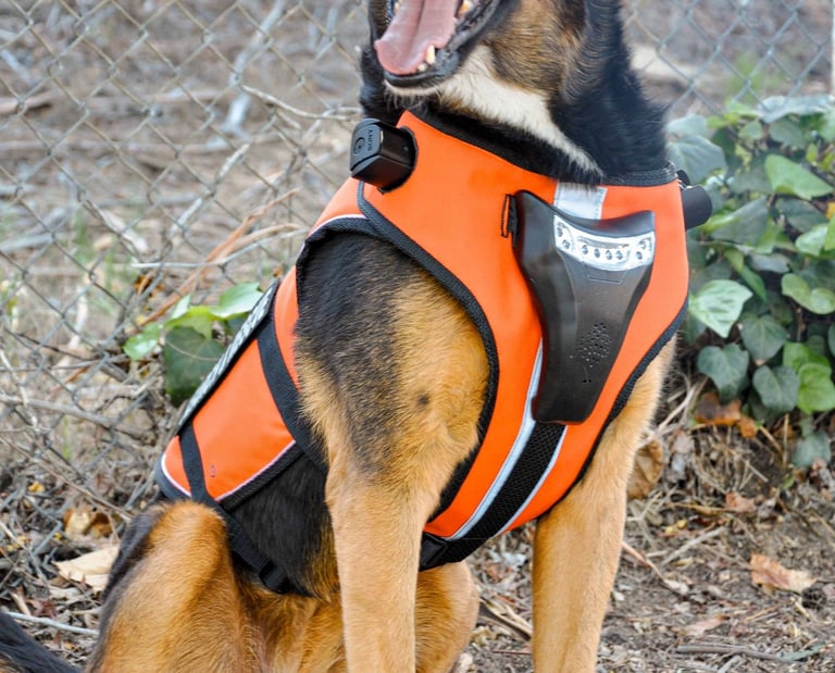 Introducing SEEK, an advanced search and rescue vest for dogs, an unparalleled tool that ensures constant connectivity between the trainer and the dog, even in moments of separation. Specifically designed to empower dogs on rescue missions, day or night, this vest elevates the effectiveness of the search process, fostering seamless communication and coordination between the canine and its handler. Welcome to a new era in search and rescue with a vest that transcends boundaries and enhances the success of every mission.