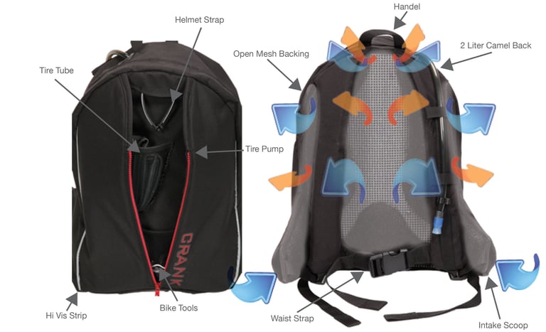 Designed with the urban cyclist in mind, Crank is more than a backpack; it's a devoted companion tailored to enhance the urban biking experience. Beyond being a mere essential carrier, Crank boasts a distinctive ergonomic backing, ensuring optimal ventilation and coolness during the journey. The ingenious airflow system actively channels air through your back, effectively minimizing heat and sweat, making Crank the ultimate sidekick for every urban biking adventure.