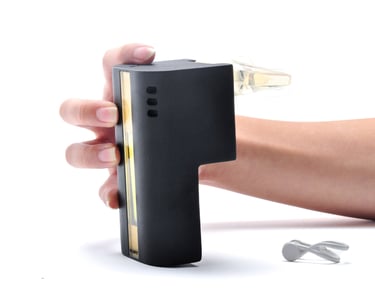 Elevating safety to new heights, EA stands as a portable modular air device designed for critical moments, offering over a minute of life-sustaining oxygen—enough time to escape a water auto accident. Compact yet powerful, this device features an integrated light that activates upon mouthpiece ejection, along with a nose clip for effortless use. Employing bone conduction technology, the mouthpiece intuitively communicates the victim's orientation and safety procedures. EA's thoughtful design enables the seamless replacement of oxygen tanks, ensuring safety and sustainability.
